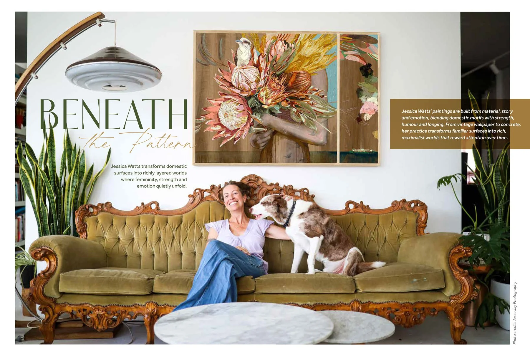 Jessica Watts transforms domestic surfaces into richly layered worlds where femininity, strength and emotion quietly unfold.